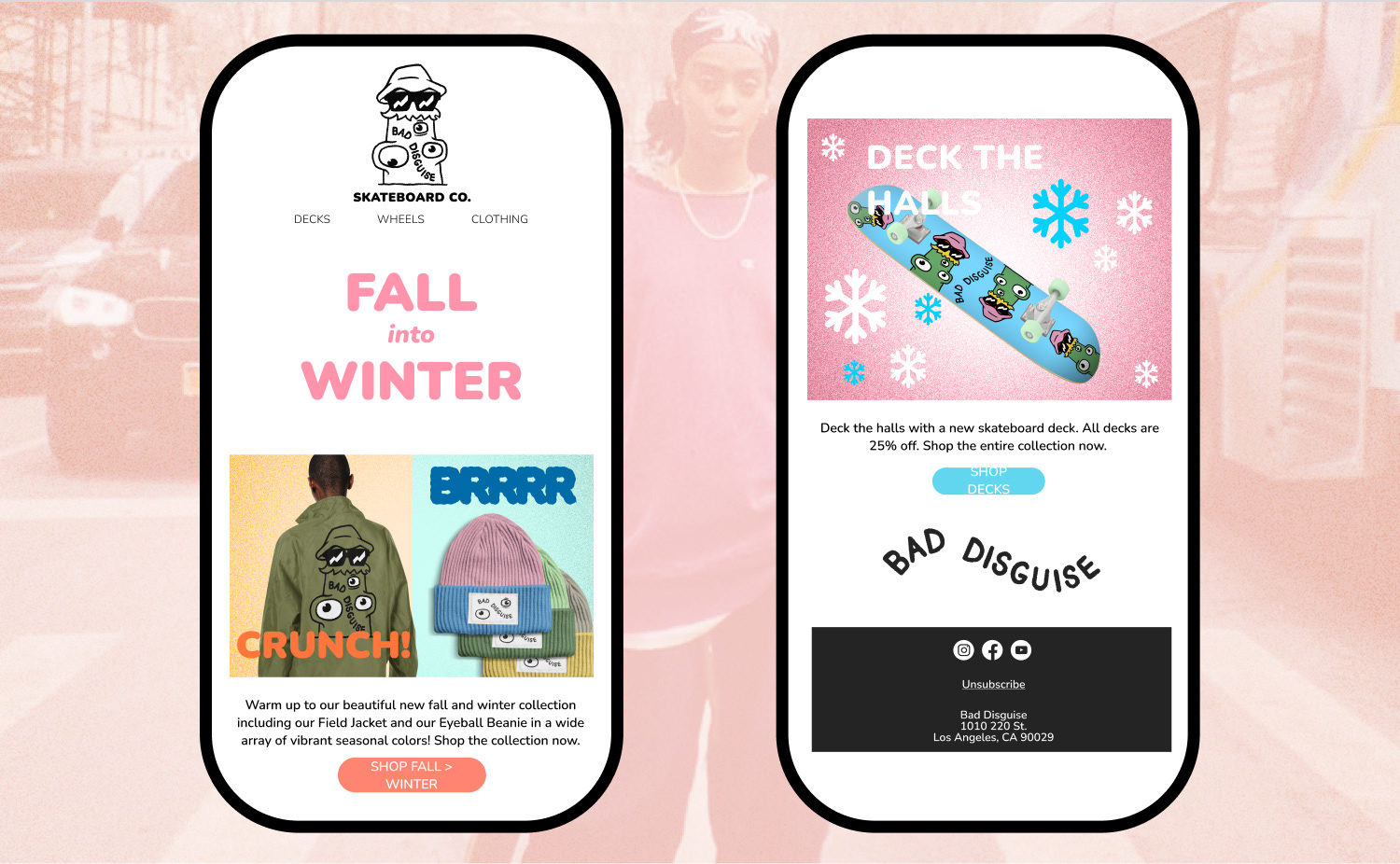 I was never a great skater, but i always loved skate culture. I wanted to create a brand based on all the amazing art and fashion i grew up obsessed with. this is bad disguise.